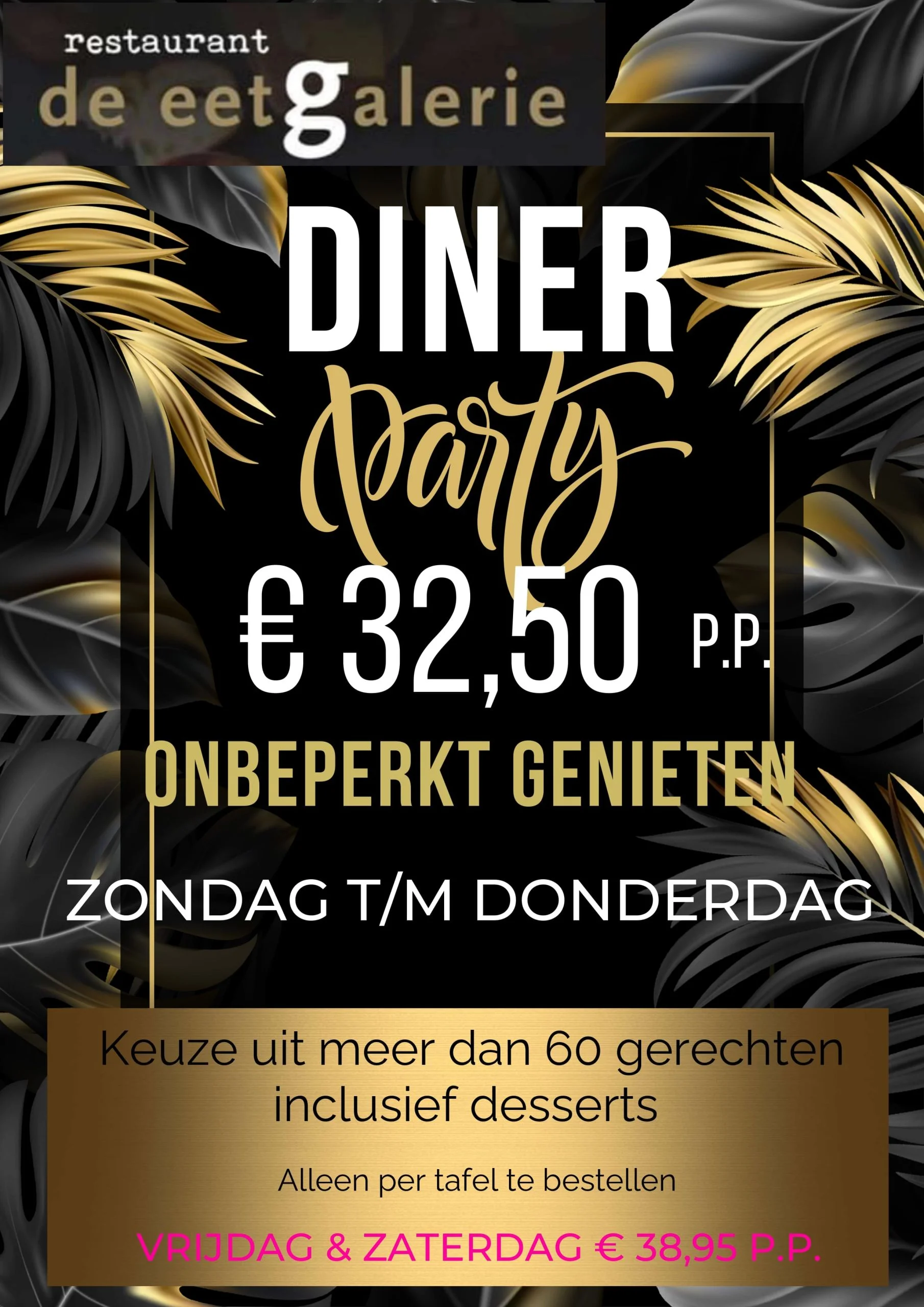 Een héle leuke actie bij De EetGalerie! Bij de EetGalerie kunt u íedere zondag t/m donderdag heel voordelig komen genieten van ons All You Can Eat arrangement.